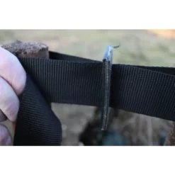 Der skal bruges ca. 1 meter rem/pæl. Pælen bankes i jorden, så den når ca. !/3  op ad stammen. Det er kun roden, der skal støttes. Træet skal kunne bevæge sig, så det kan få en stærk stamme. Remmen lægges rundt om træet, begge ender stikkes igennem en opbindingslås , derefter sømmes eller skues remmen fast øverst på pælen.