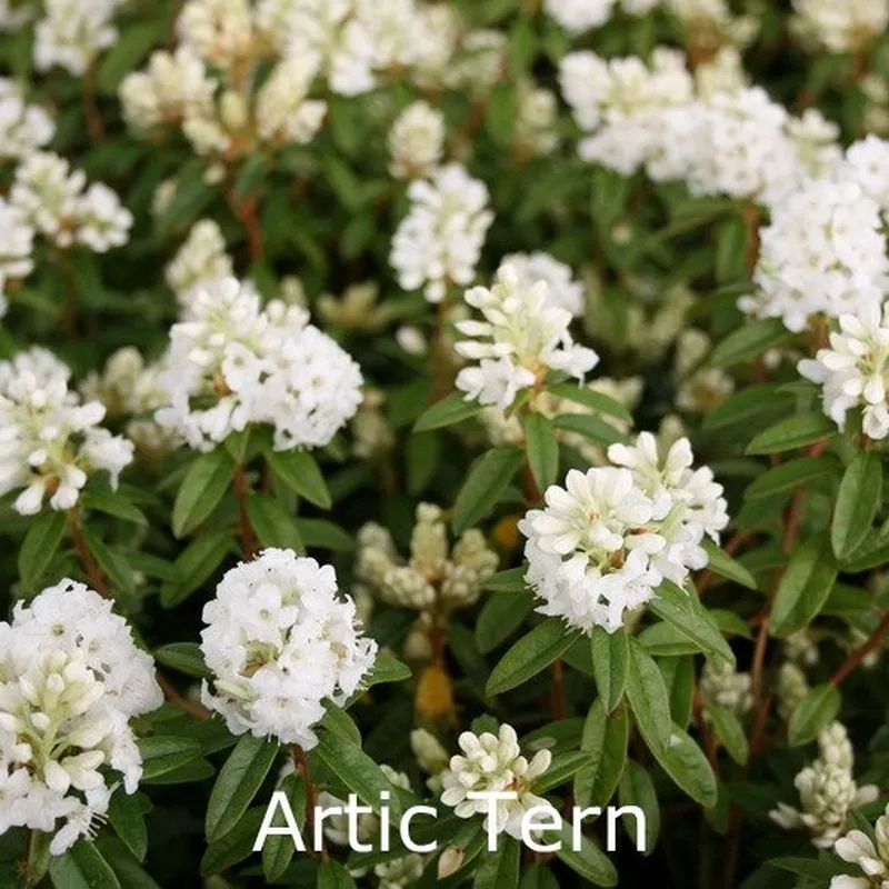 Småbladet art/hybrid – trichostomum ‘Artic Tern’, Blomster: Renhvide blomster i små kugleformede stande i april Blade: Mørkegrønne, små blade Duft: Nej Væksthøjde (cm): 40 Vækstbredde (cm): 50 Bemærkninger: Hele planten er giftig. Bør plantes i surbundsjord. Pottestørrelse: 2 l eller større