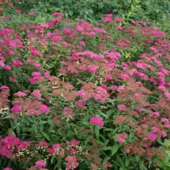 Spiraea bumalda ‘Anthony Waterer’ – Spiræa – bliver en lav ca. 1 m. høj busk. Trives i alle jordtyper. Tåler sol-halvskygge. Hårdfør, tåler lidt blæst. Røde blomster i skærme i juli-september. Kan anvendes til uklippede hække med 1-3 stk. pr. løbende meter. – Salgshøjde: 20-40 cm. – Barrodet bundt a’ 10 stk.